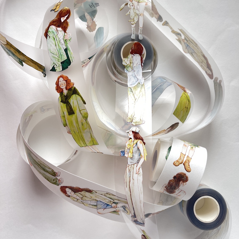 【DingDing文创第6弹18#】原创设计人物 和纸PET手账胶带百搭素材