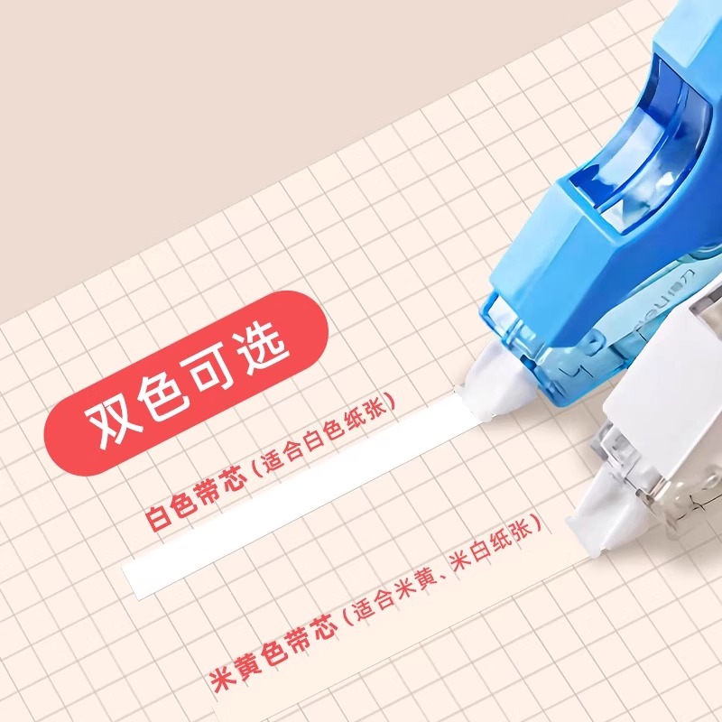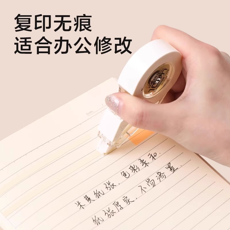 得力米黄色带芯修正带小学生专用大容量实惠型涂改带改错带修改带女生高颜值耐摔不断带初中生高中生专用80米