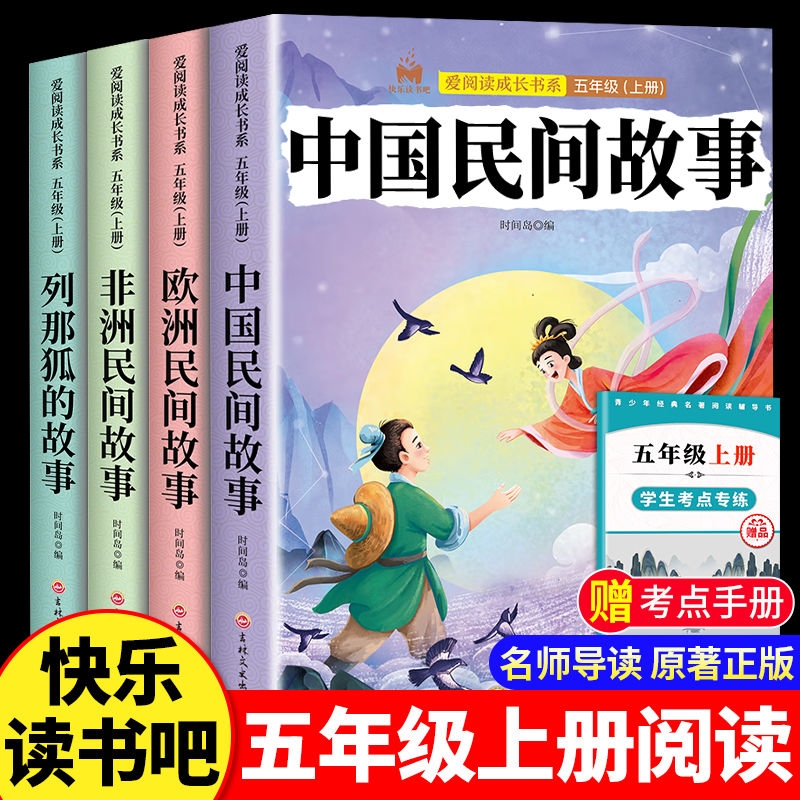 五年级上册必读课外阅读中国民间故事欧洲事非洲列那狐的故事一千零一夜赠考点手册教材配套书目正版