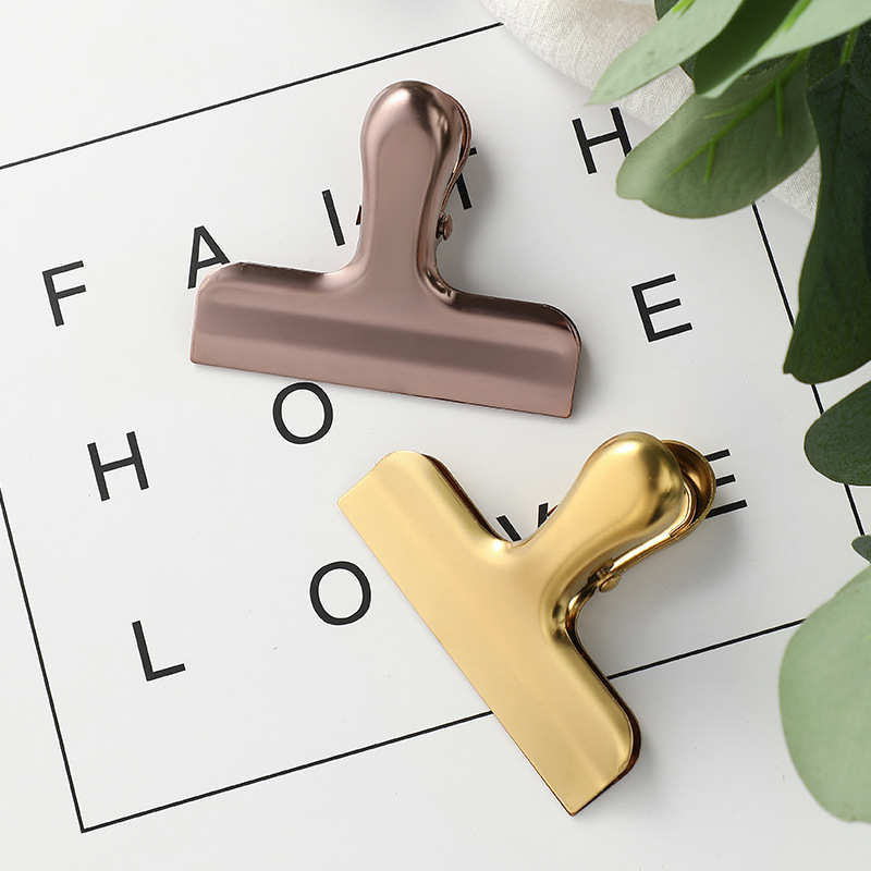 轻奢风金属封口夹不锈钢燕尾夹食物夹子票据夹子办公文件夹文具夹