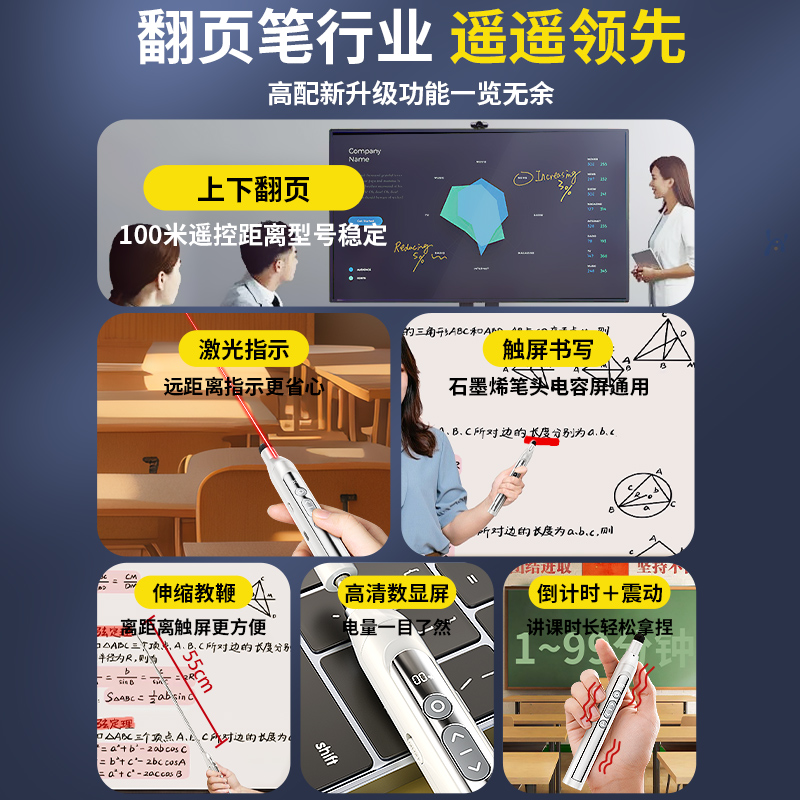 伸缩教鞭翻页笔ppt教师上课用触控笔多功能激光笔投影仪电子多媒体教学希沃白板ppt一体机可书写蓝牙触屏连接