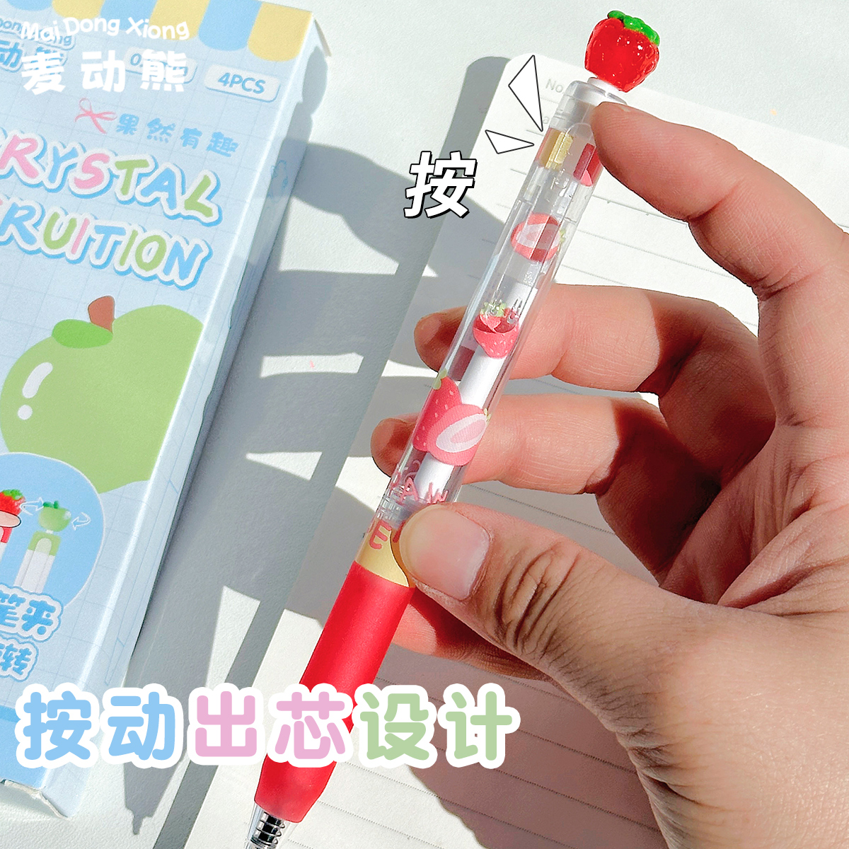 麦动熊果然有趣中性笔小学生创意可爱解压水果高颜值刷题笔黑色笔