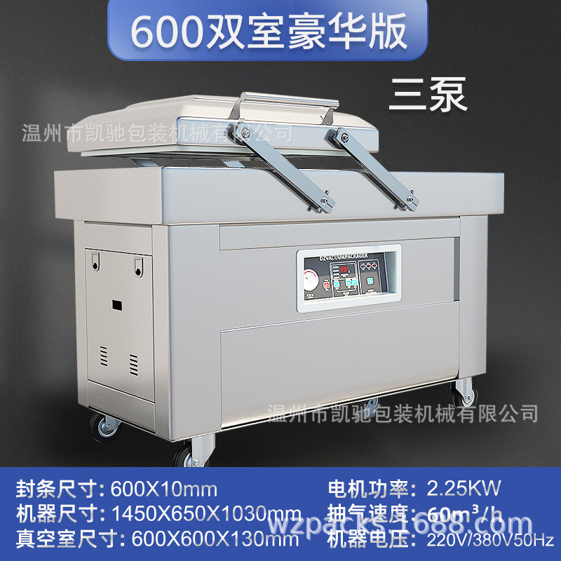鑫凯驰600双室真空包装机大米商用干湿两用全自动抽真空机封口机