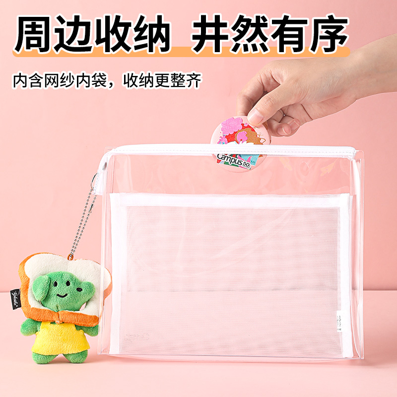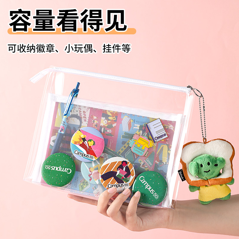 日本KOKUYO国誉Campus高透明展示痛包推活系列收纳包PVC大容量旅行便携手拿包多功能拉环展示包学生diy组合包