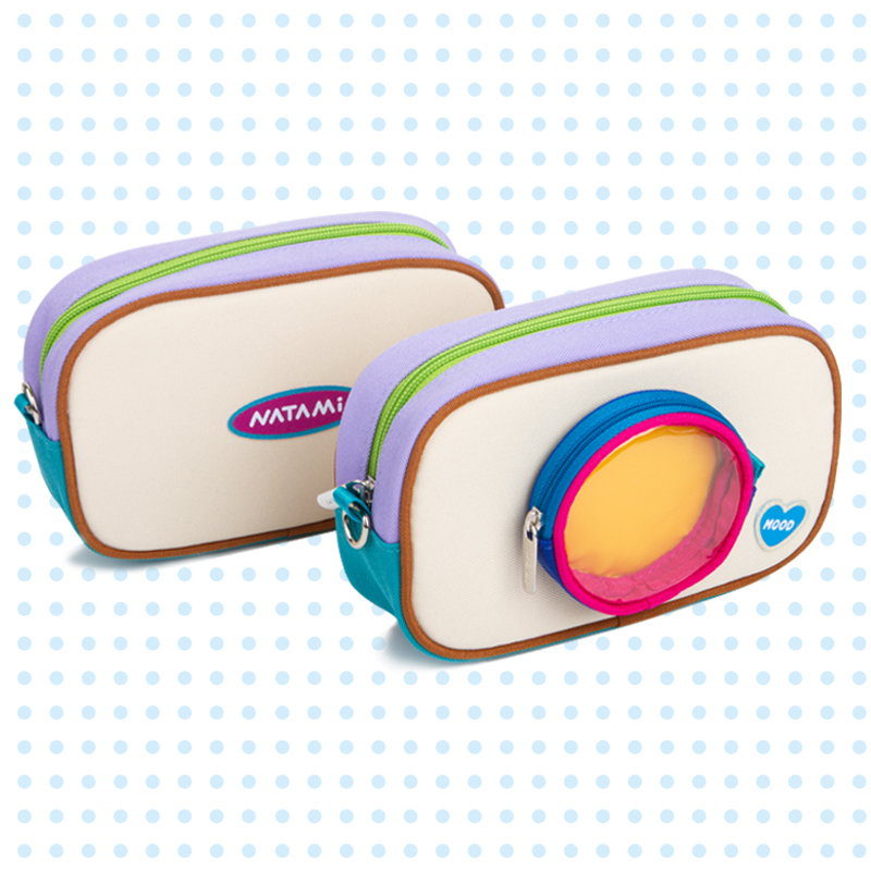 NATAMI奈多美拼色相机造型笔袋包可斜挎可爱撞色多功能收纳百搭文具收纳出游旅行包谷子胸章痛包