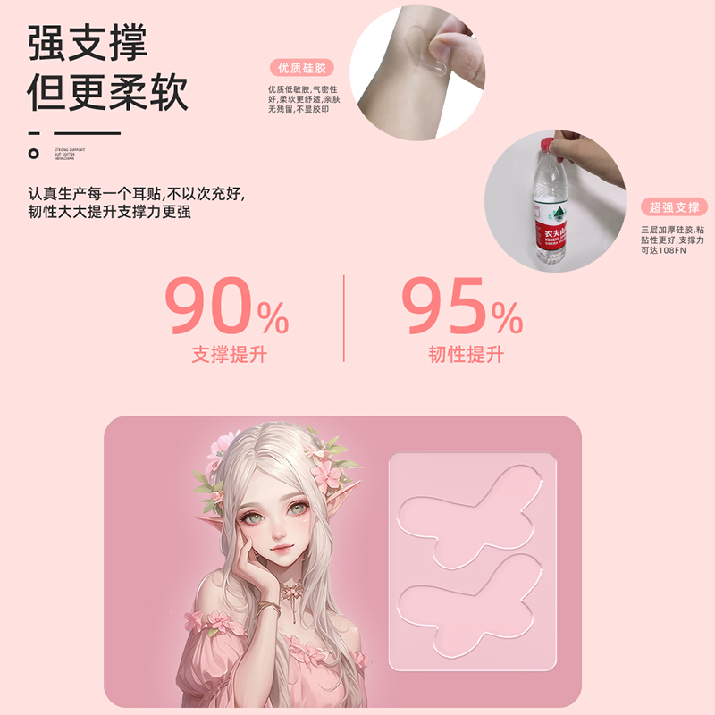 新款蝴蝶型精灵耳贴强支撑定型立耳神器大脸显脸小隐形撑耳朵男女