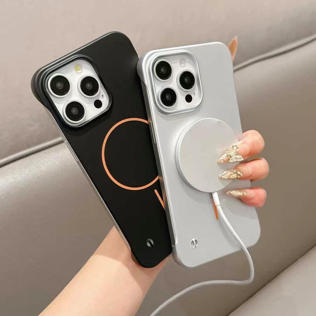 细圈磁吸无边框透气散热适用苹果iPhone16promax手机壳高级感15磨砂防滑防指纹14Plus保护套超薄硬壳新款防摔
