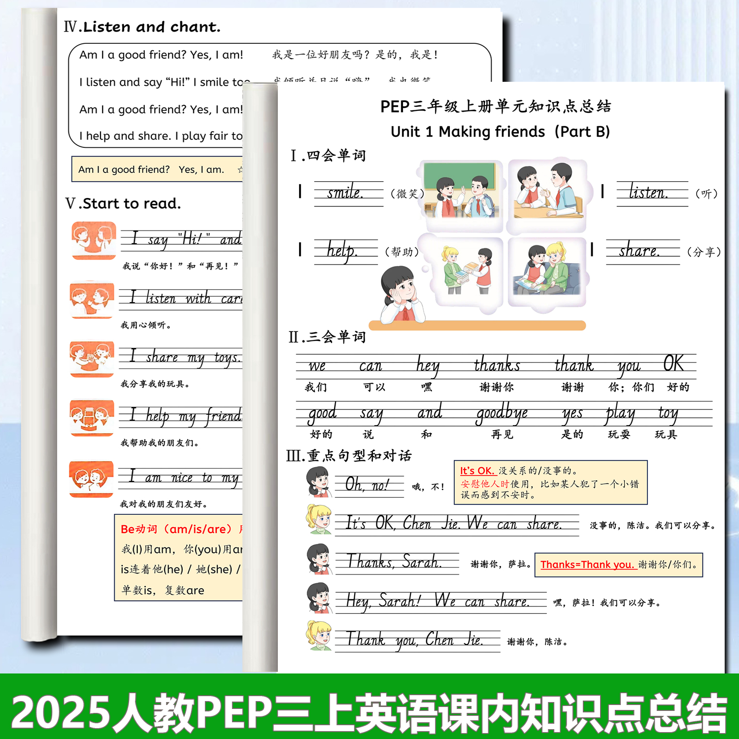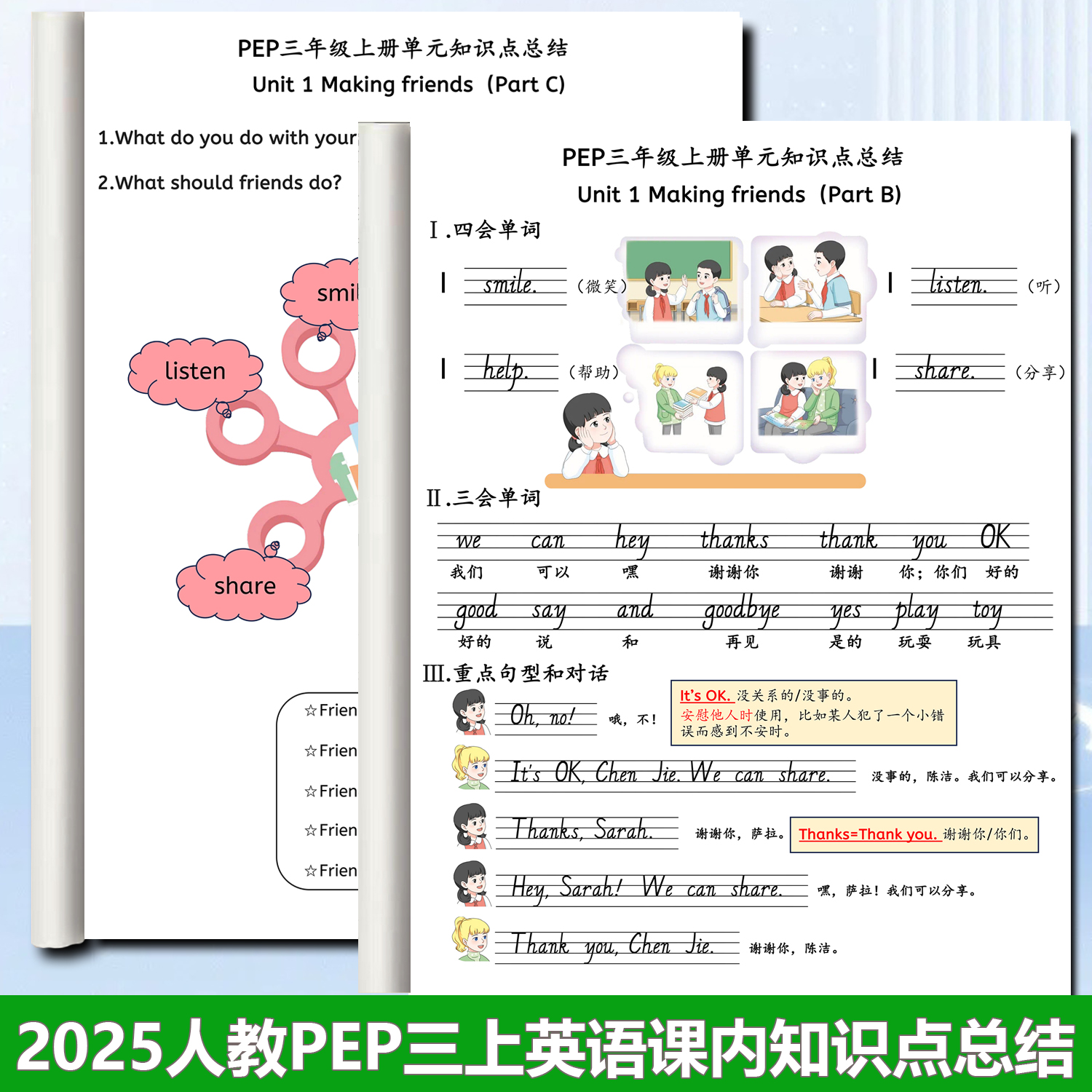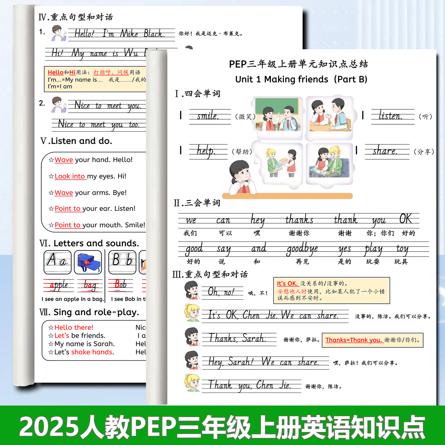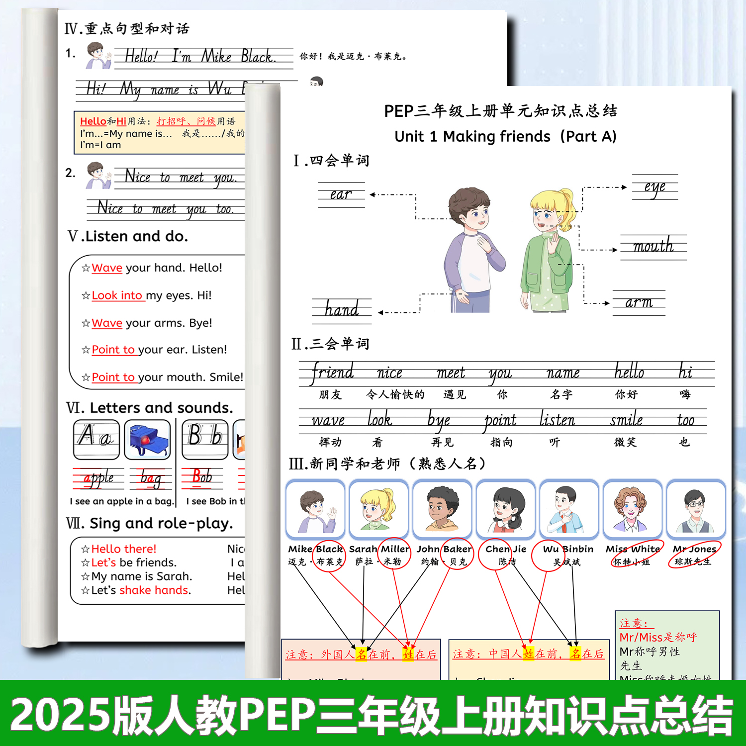 25新三年级上册英语1-8单元知识点总结暑假预习开学彩印本