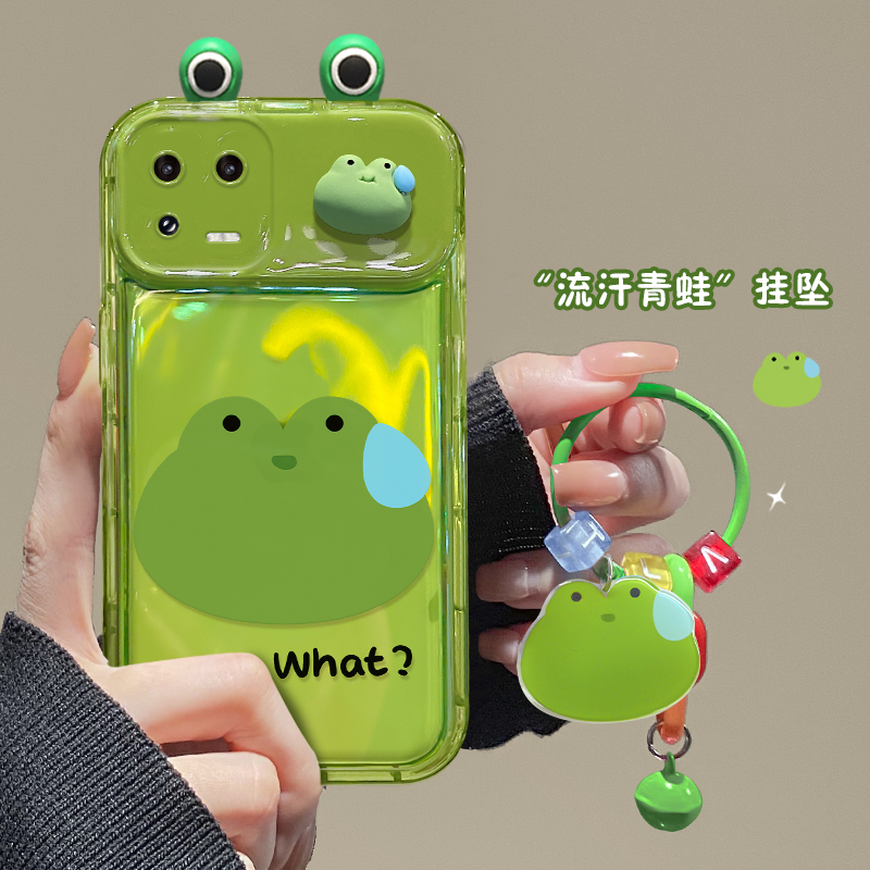 适用于小米13手机壳红米k50/k60pro翻盖镜子k40/k30i新女款小米12/10s防摔note9/11青蛙公仔挂坠透明5g保护套