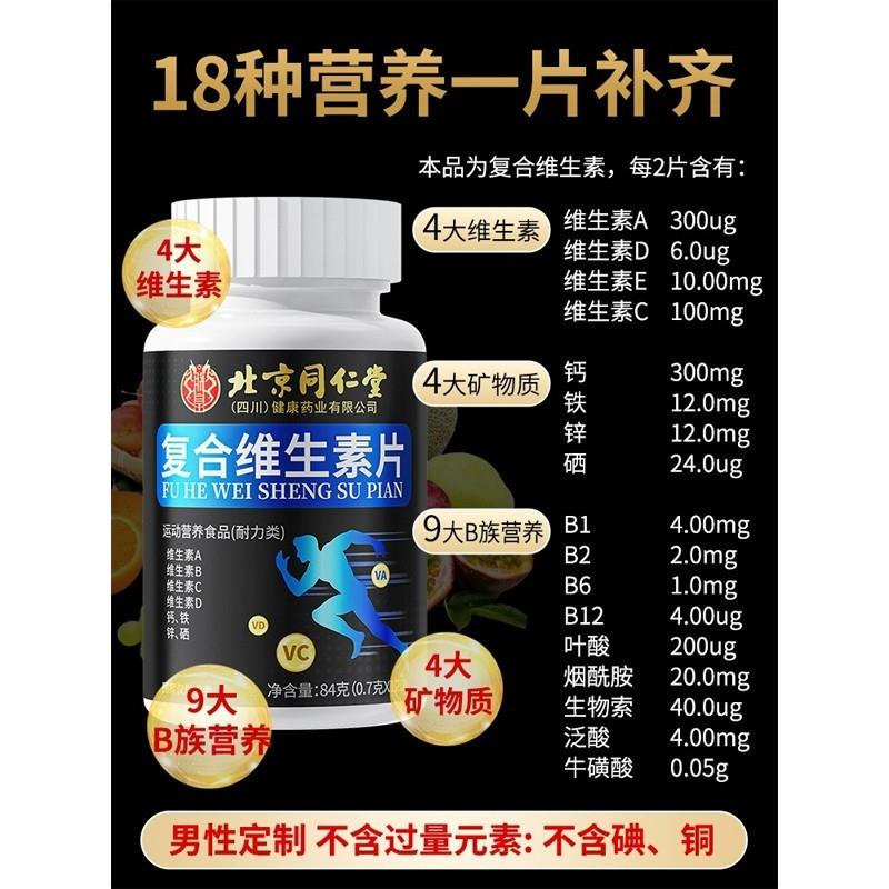 北京同仁堂男士覆合维生素片b12男性专用功能咀嚼片精力免疫差
