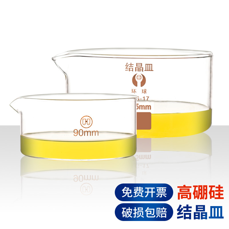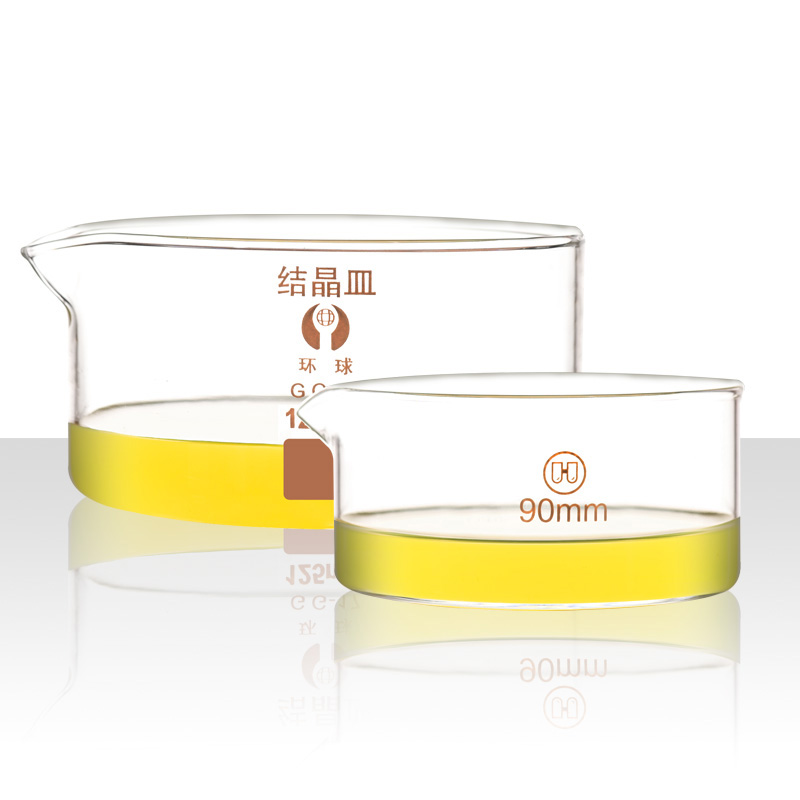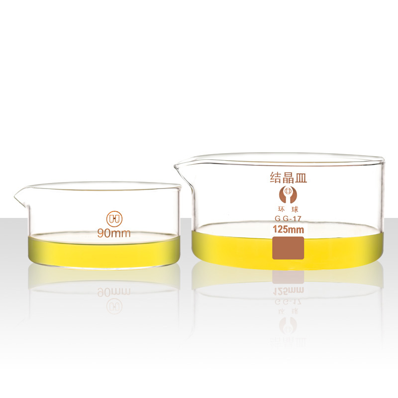 环球结晶皿具嘴平底皿耐高温大口圆形100 125 150 180 200 230mm化学实验室用器皿容器器材boro3.3高硼硅玻璃