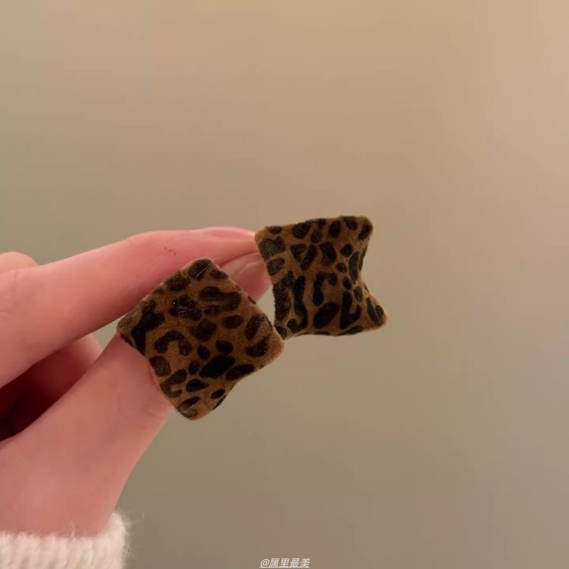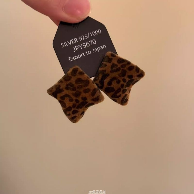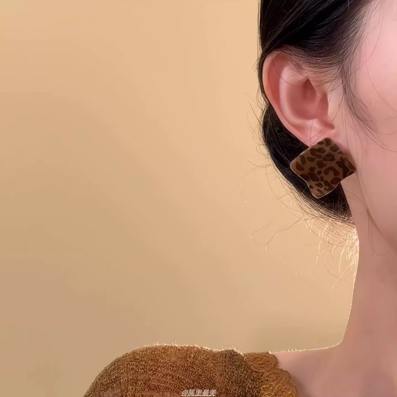 精致丽人~复古豹纹方形绒面耳钉气质大气耳环秋冬百搭女人味耳饰