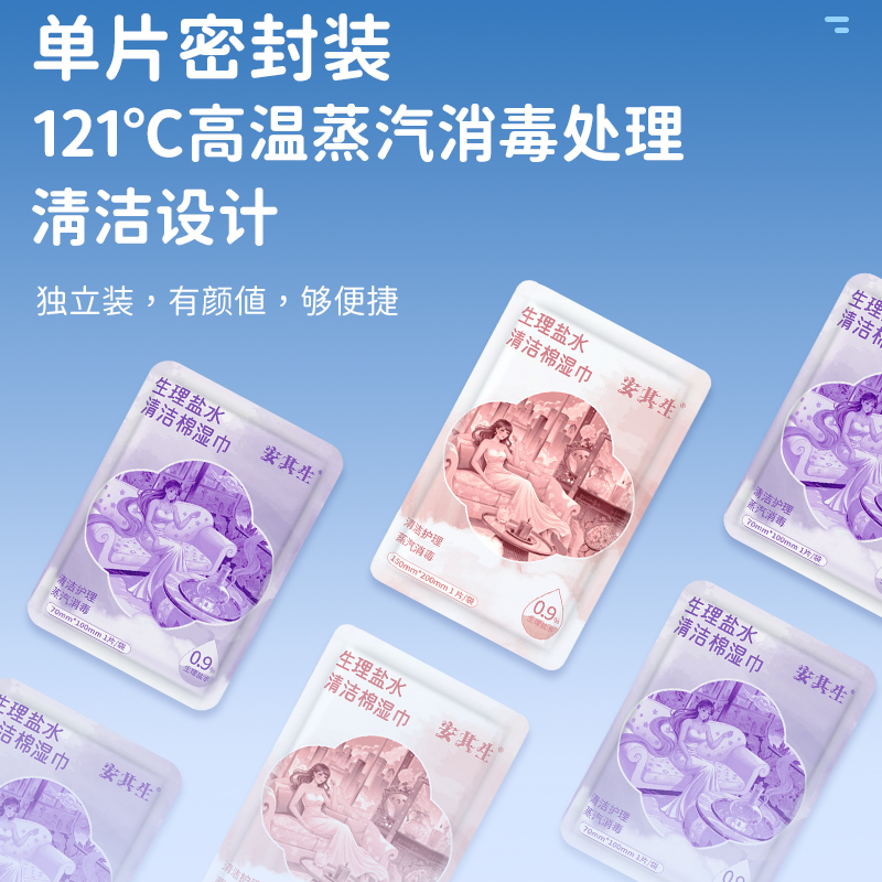 安其生一次性盐水湿巾清洁棉片湿纸巾独立包装便携不刺激无菌