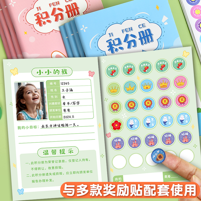 小学生积分册儿童阅读存折心愿奖励记录本印章积分卡幼儿园小红花贴纸收集本零花钱积分册子激励盖章集赞本