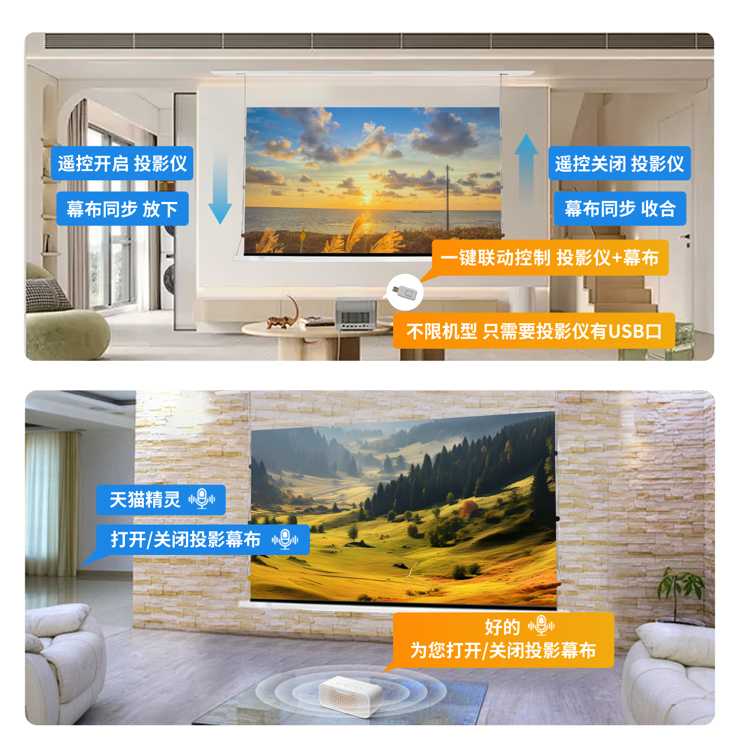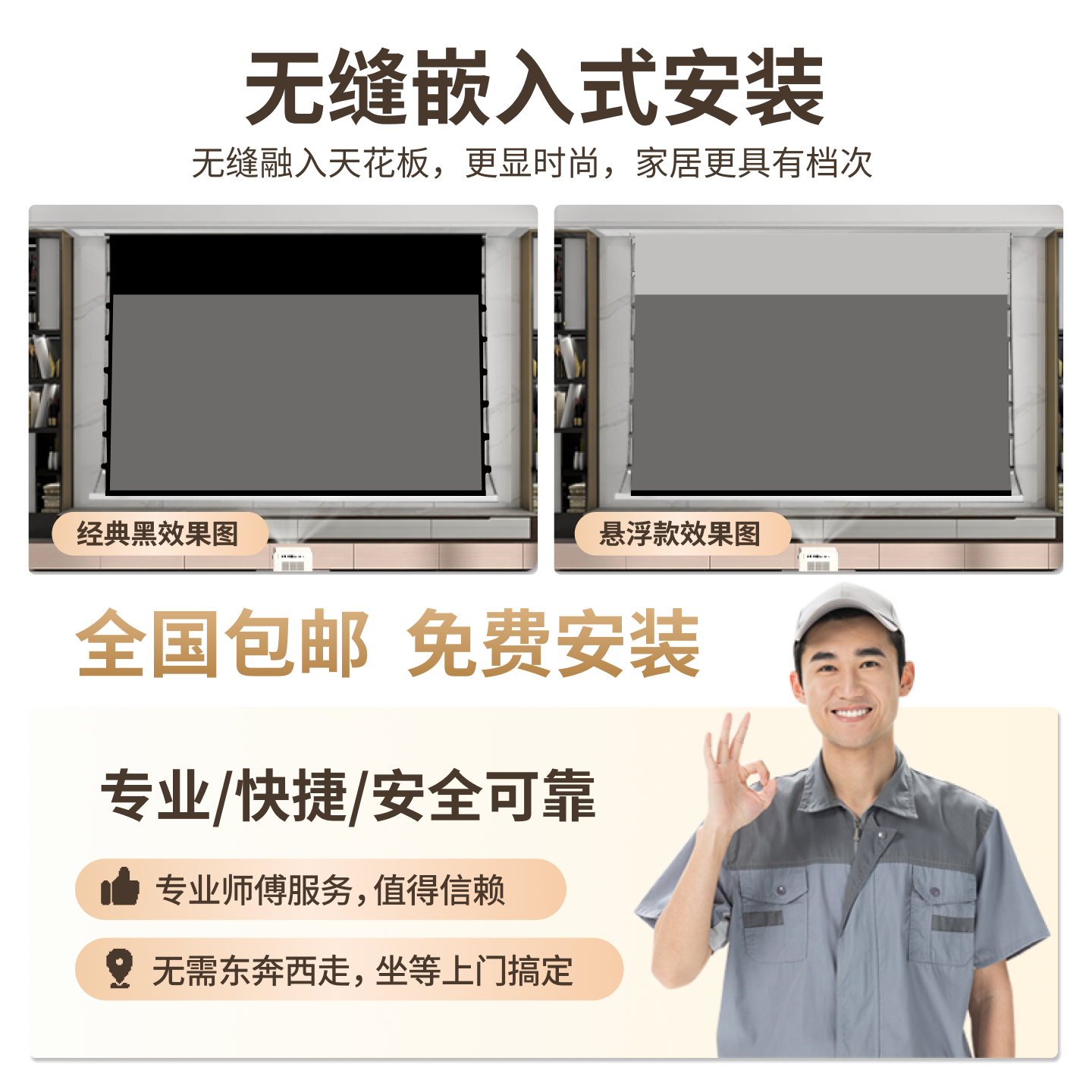 博视银屏天花全隐藏投影幕布嵌入式电动悬浮幕智能联动支持小爱同学100寸120寸拉线菲涅尔抗光幕