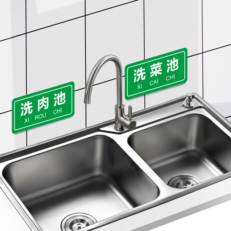 一清二洗三消毒厨房分类标识牌全套防水油食堂酒店卫生检查指示餐厅分类4D后厨管理标签贴分区牌亚克力提示牌
