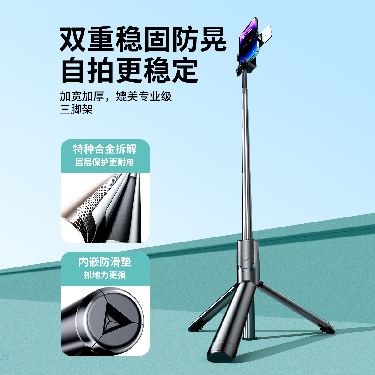蓝牙自拍手柄三脚架手持稳定可伸缩助拍器四合一拍摄自拍杆2025旅游便携多功能vlog摄影配件视频变焦拓展神器