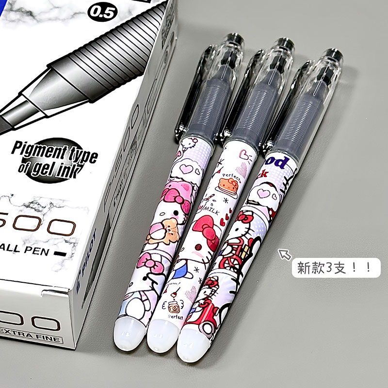 日本Pilot百乐P500-kt猫卡通系列中性笔针管0.5mm考试大容量水笔直液式刷题签字笔中高考专用高颜值正品文具