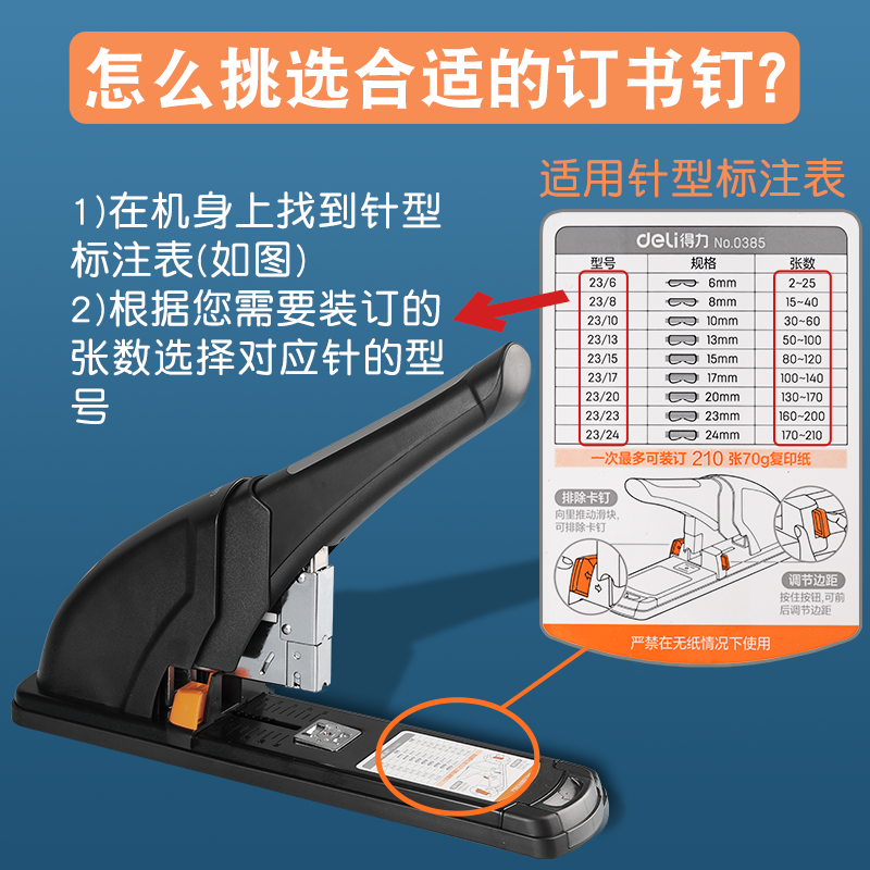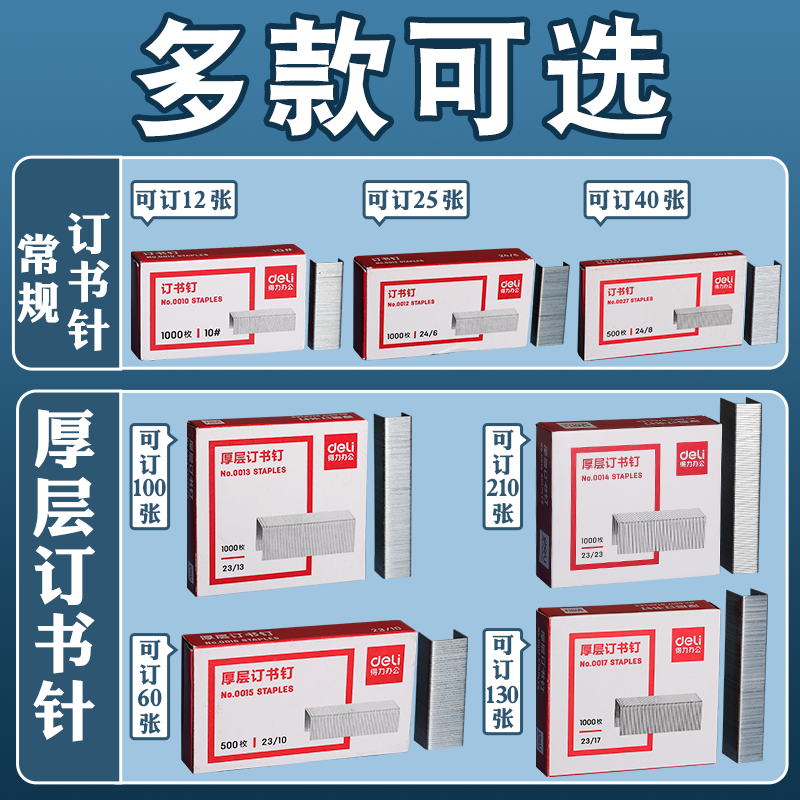 得力厚层订书钉大型重型订书机钉子特大号23号60页订厚书100页超厚210页120页办公用订书针大订书机钉加长钉