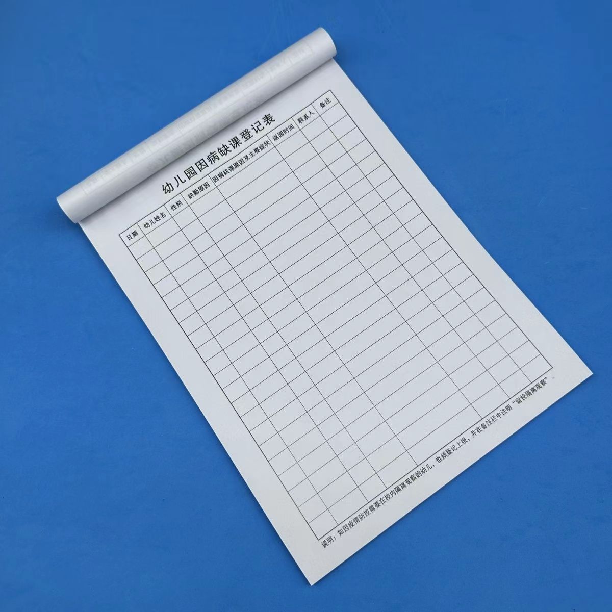 幼儿因病缺课登记表缺勤记录本幼儿园因病缺课登记本请假病假本子