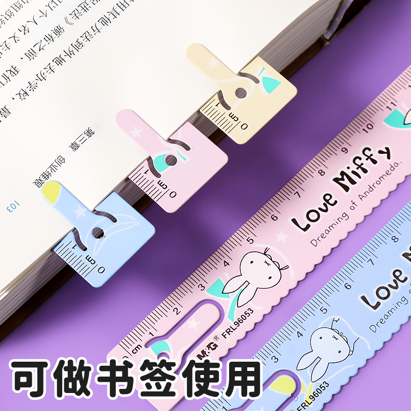 晨光米菲金属直尺小学生专用一年级免费定制刻名字六一儿童礼品15cm书签尺子可爱卡通男女孩波浪线多功能直尺