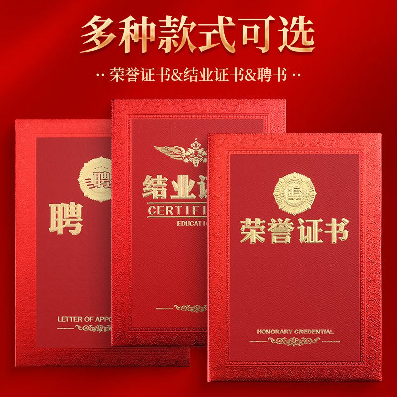 结业证书外壳培训研学结营荣誉证书套聘书打印员工奖状封皮A4内页