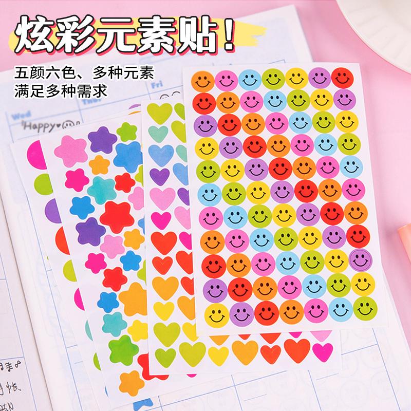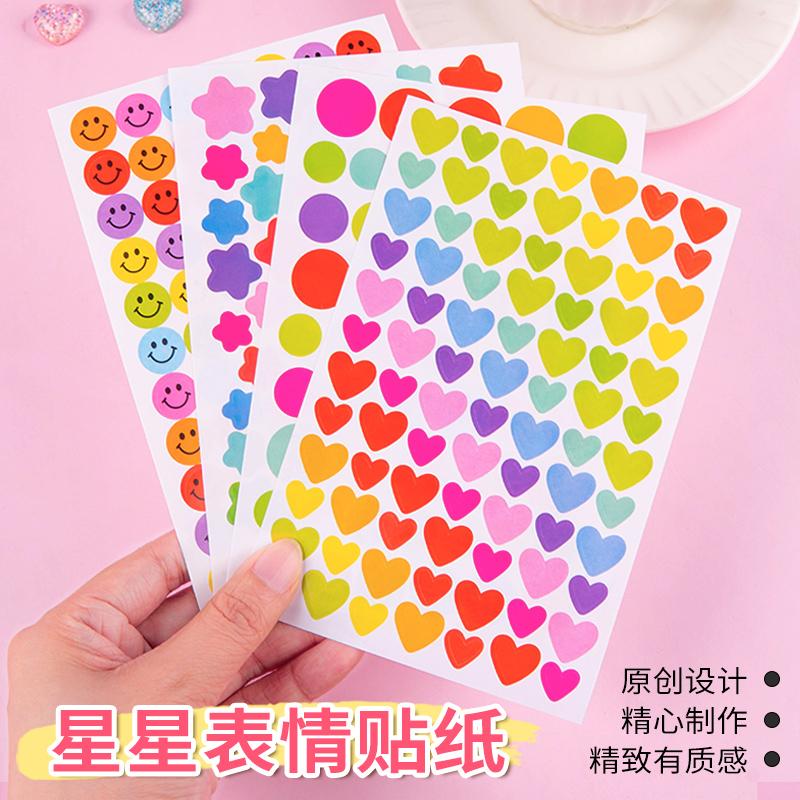 炫彩小元素贴纸爱心五角星星圆形彩色贴纸儿童奖励贴纸可手写分类标记标签手帐成长手册相册装饰素材封口贴