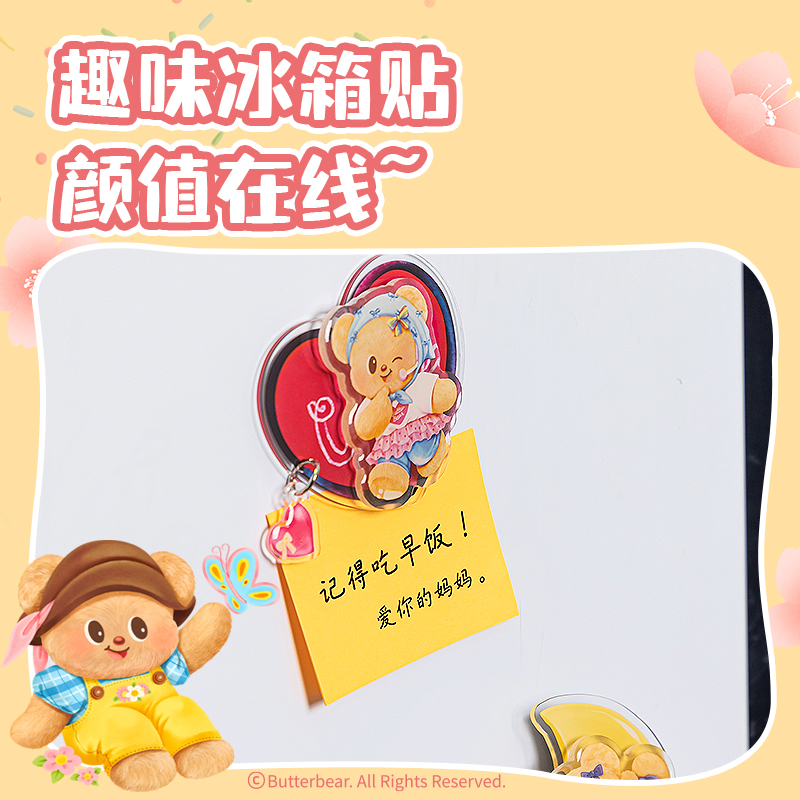 得力黄油小熊联名亚克力冰箱贴生日礼物强力磁性不易掉高颜值可爱趣味门贴磁吸装饰配件文创周边装饰品迷你