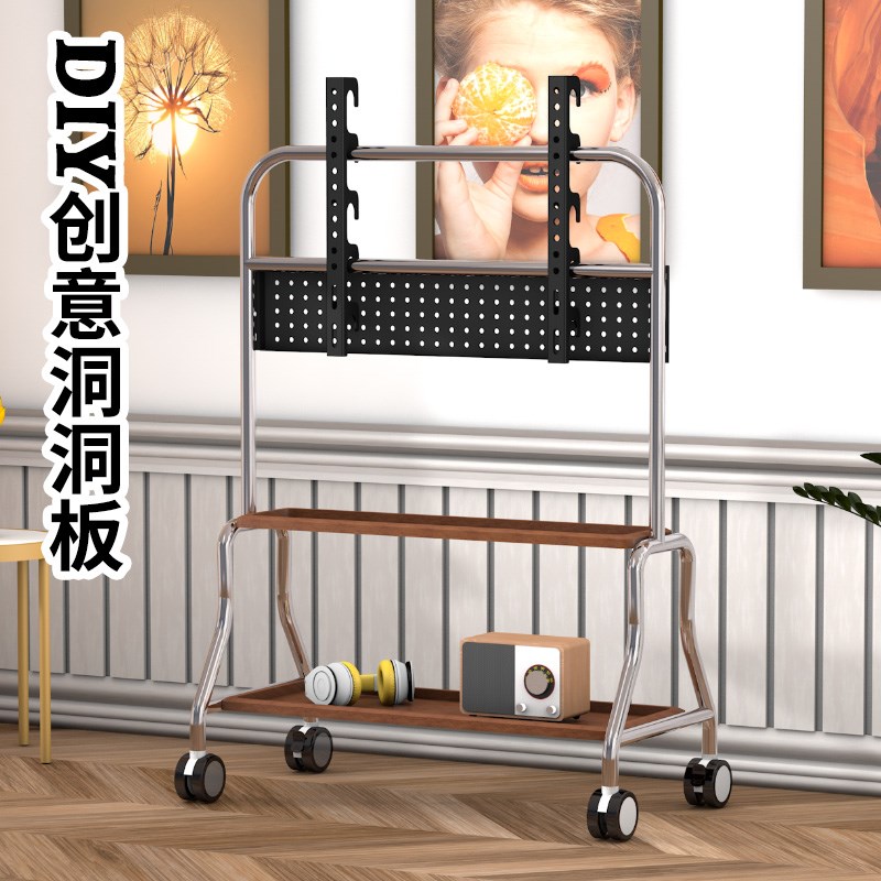 可移动电视机不锈钢落地支架落地式带轮推车42/55/65W/75英寸挂架