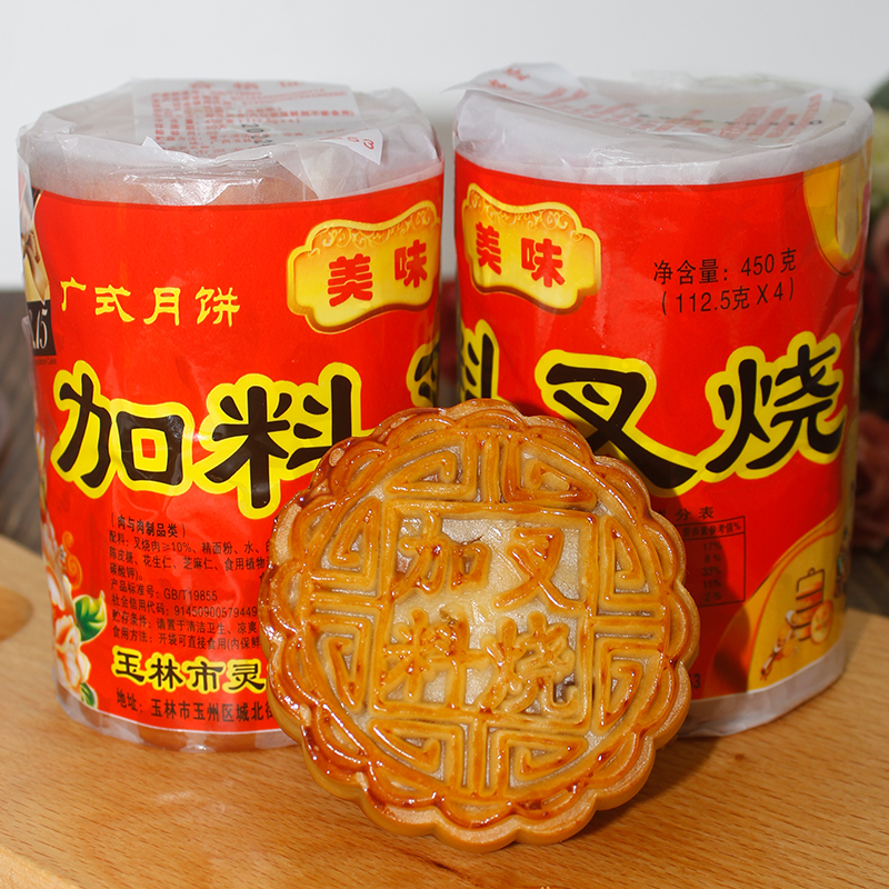 广西桂味五仁叉烧月饼450g/筒4只传统纸筒老式中秋广式哈密瓜豆沙