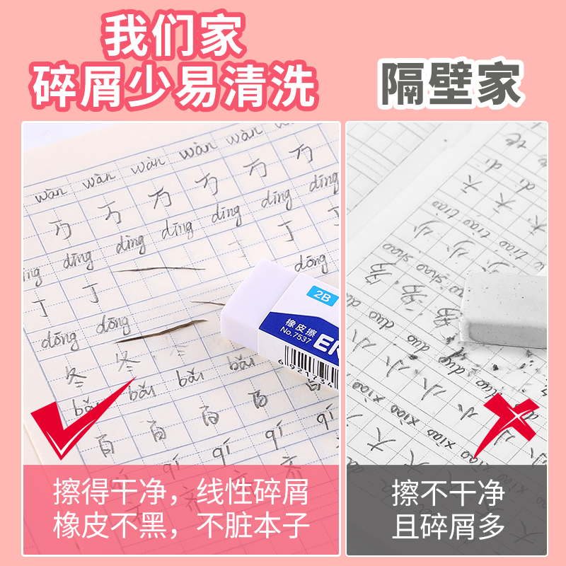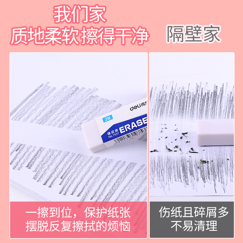 得力橡皮擦小学生专用素描无屑擦得超干净像皮擦不留痕2b比儿童幼儿园专用考试美术生干净象皮擦铅笔