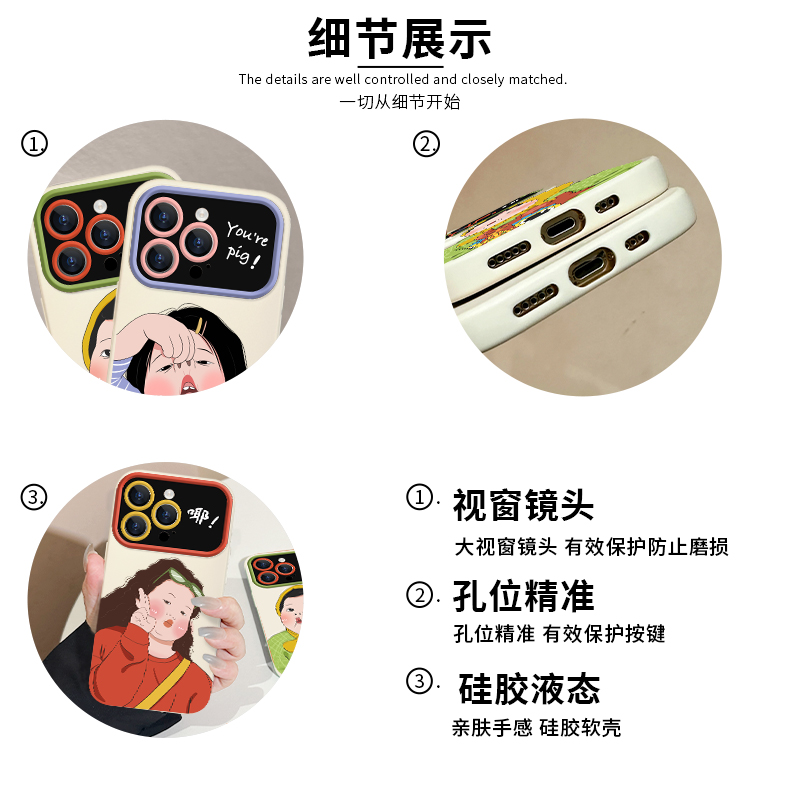 原创设计适用于苹果14保护套iphone17pro女孩插画16promax高级小众11大视窗13plus创意挂绳新款12pm全包防摔