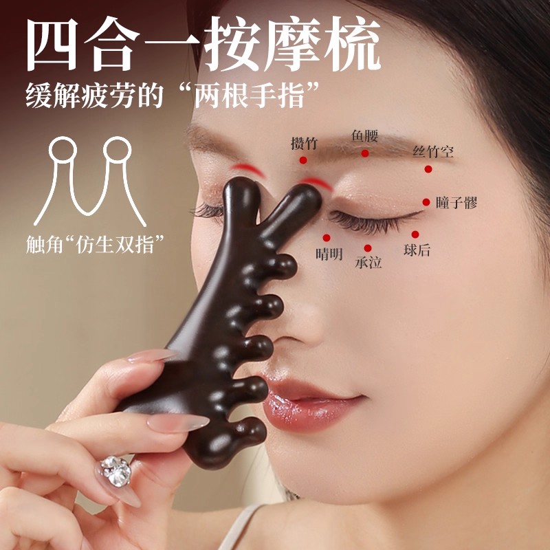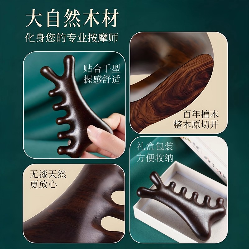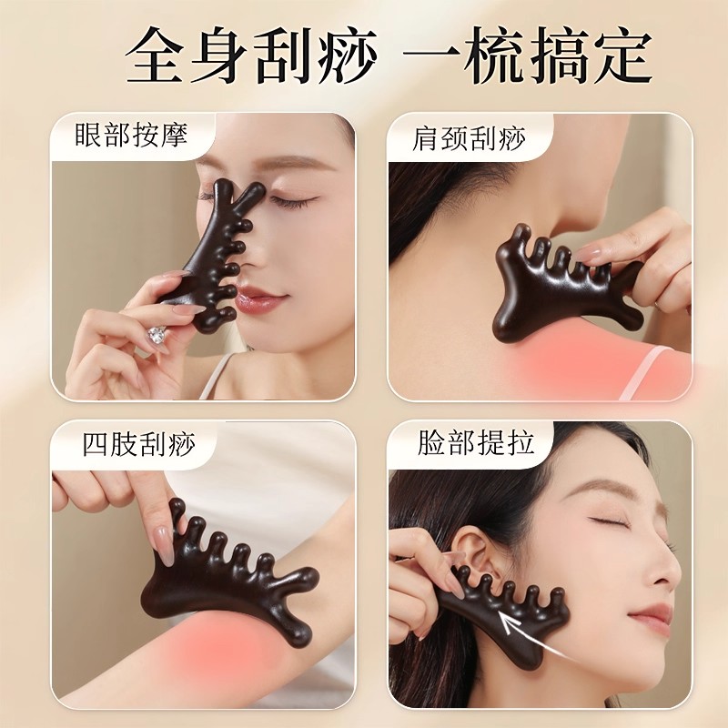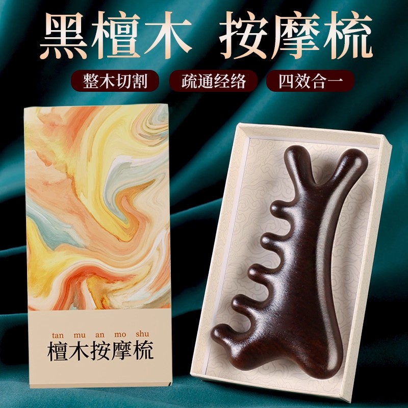 天然黑檀木四合一按摩梳经络梳头部颈部刮痧疏通多功能头皮脸部