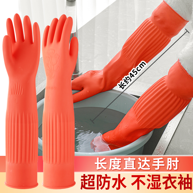 加长款洗碗手套乳胶橡胶家用厨房用洗衣服加厚防水耐磨家务清洁