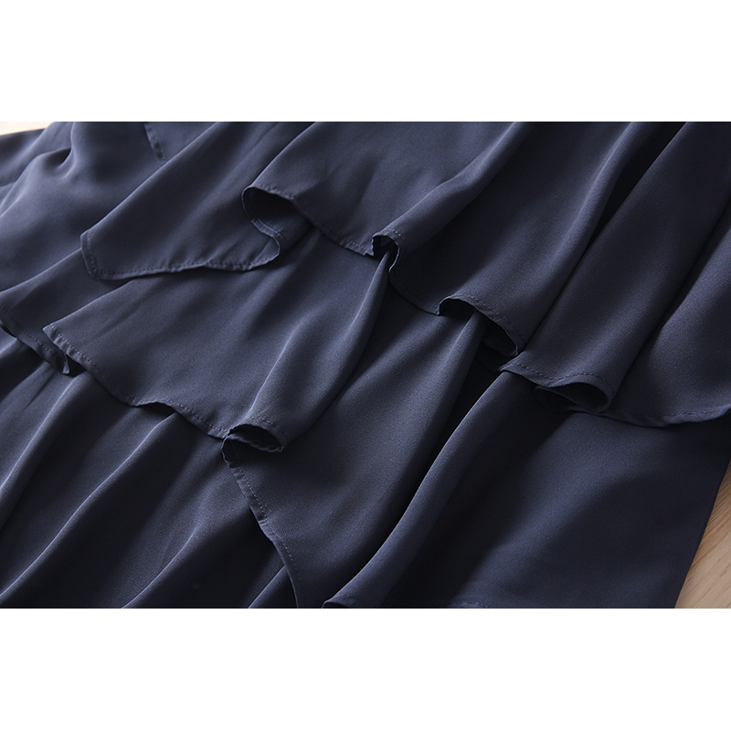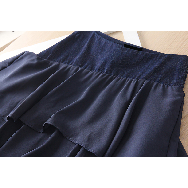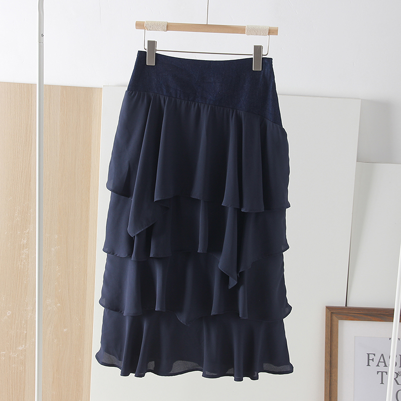 西班牙单牛仔拼接雪纺不规则荷叶边半身裙蛋糕裙长裙女高腰A字裙