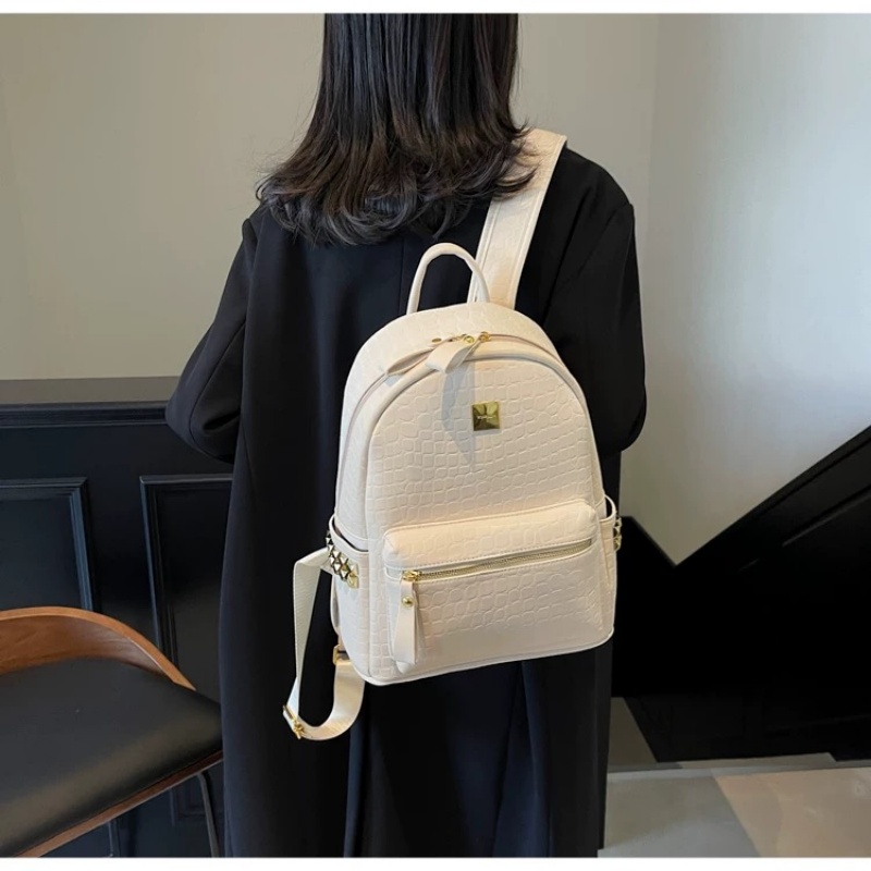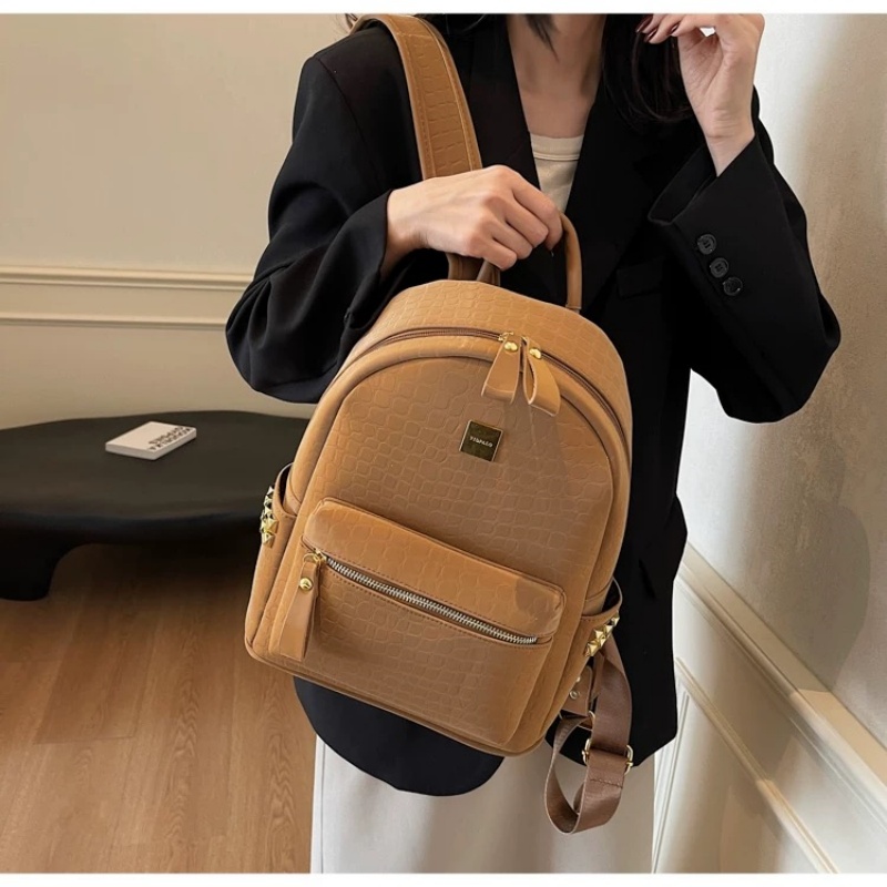 今年流行的石头纹双肩包女式欧货皮质旅行背包大容量时髦学生书包