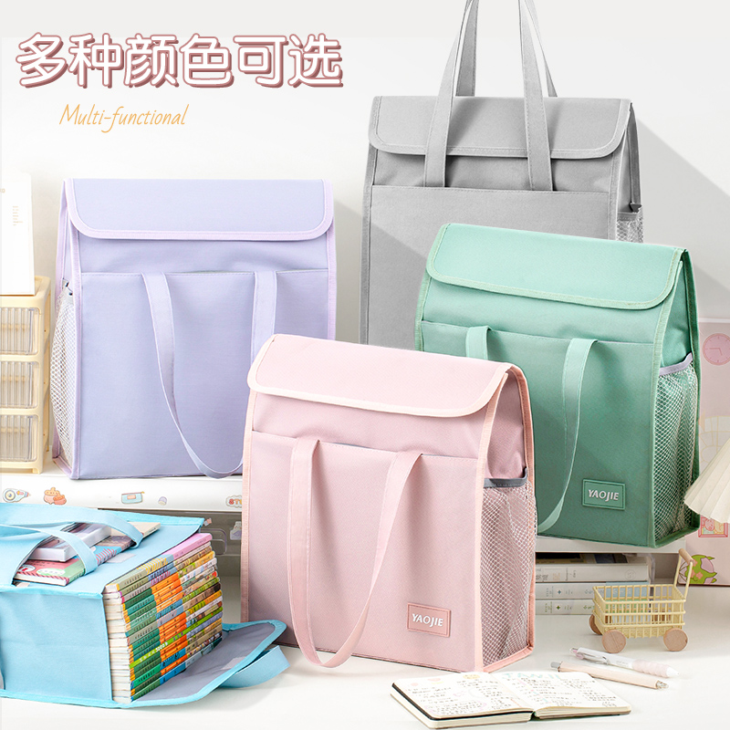 学生立体手提拎书袋初高中生大容量学习袋课本作业美术补习包帆布防水A4文件袋拉链袋孕妇产检资料收纳袋定制