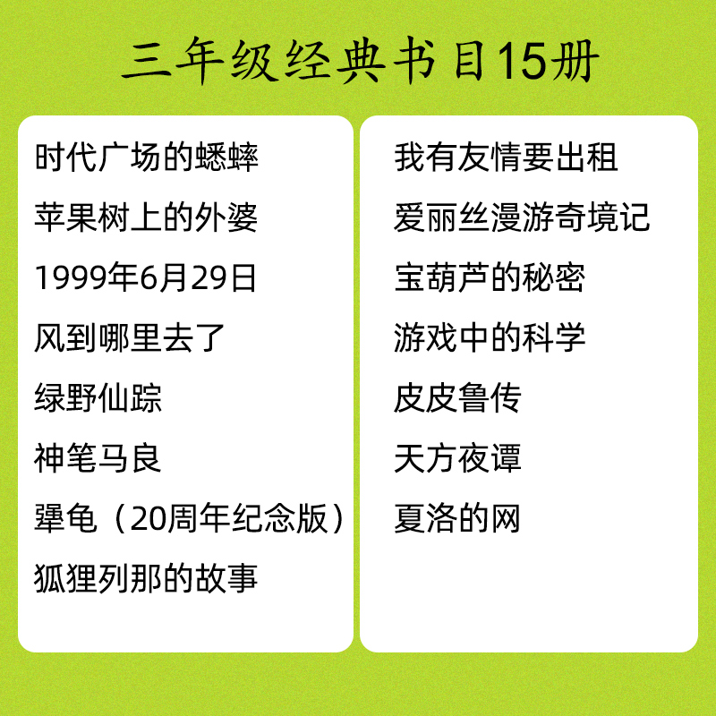 三年级必读课外书15册夏洛的网皮皮鲁传天方夜谭宝葫芦的秘密苹果树上的外婆时代广场的蟋蟀绿野仙踪神笔马良爱丽丝漫游奇境阅读
