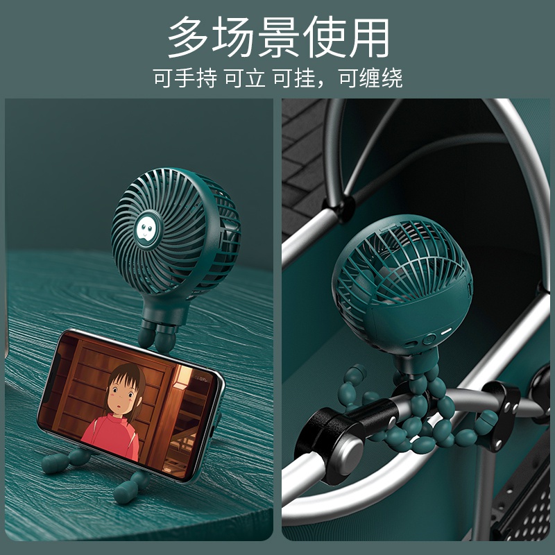 婴儿车小风扇小型迷你八爪鱼儿童可爱手持拿夹Q子推车宝宝专用便