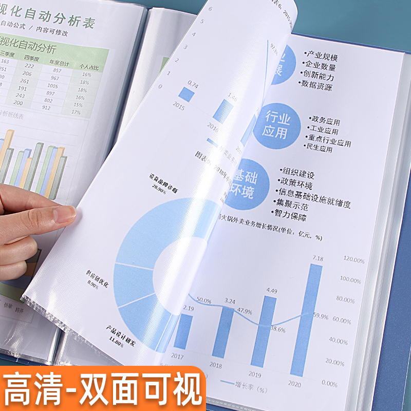 得力文件夹资料册a4透明插页资料奖状收集册资料夹收纳夹办公用品多层整理活页夹孕检收纳册档案蓝色职场分类