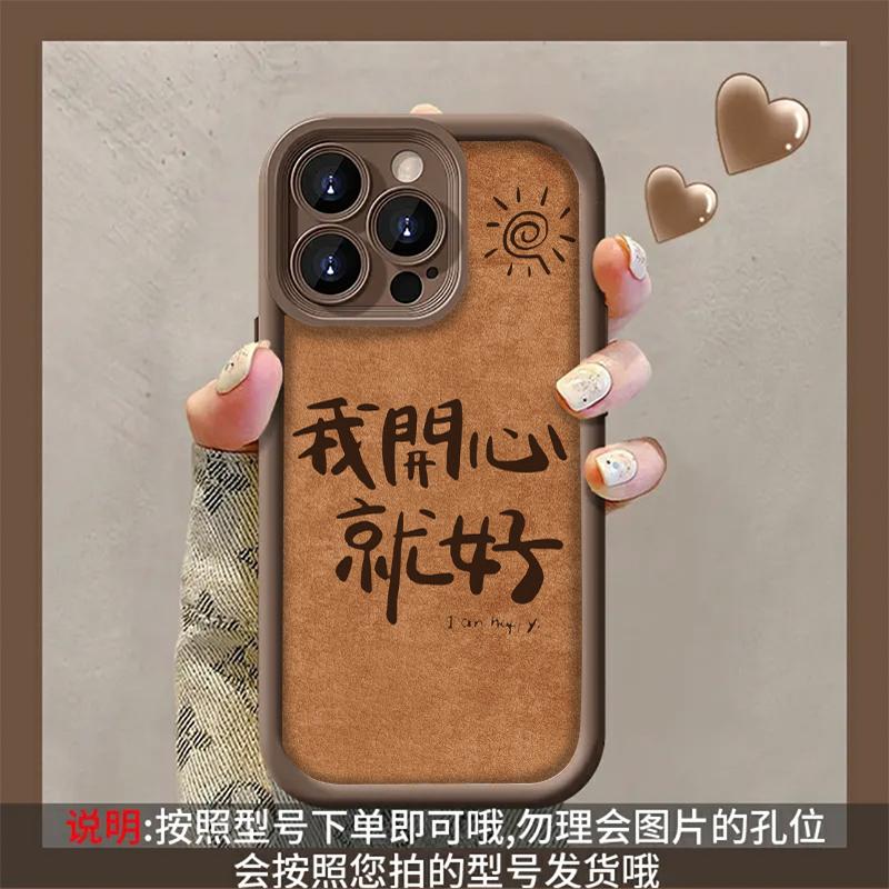 我开心就好适用苹果16/15/手机壳华为Pura70pro新款mate60美拉德OPPO挂绳vivos19x100套iQOOz9小米14note13软