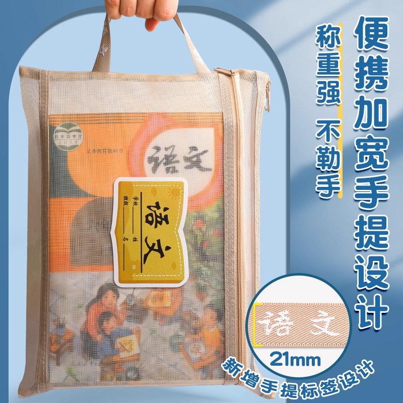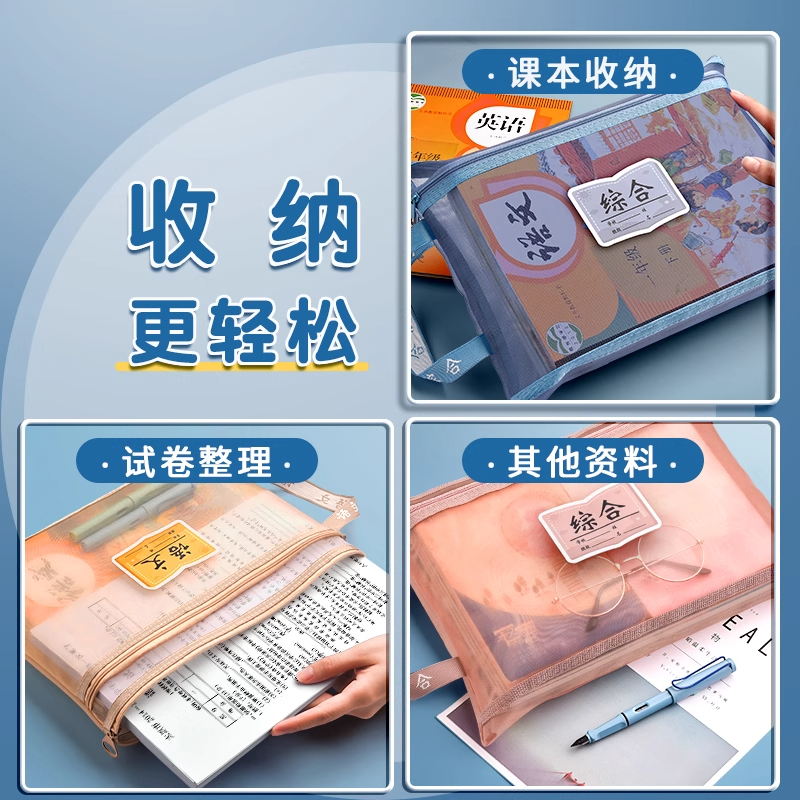 学科科目分类文件袋拉链式双层大容量小学生用资料书本课本分科书袋试卷收纳袋学生装卷子作业袋子A4透明网纱