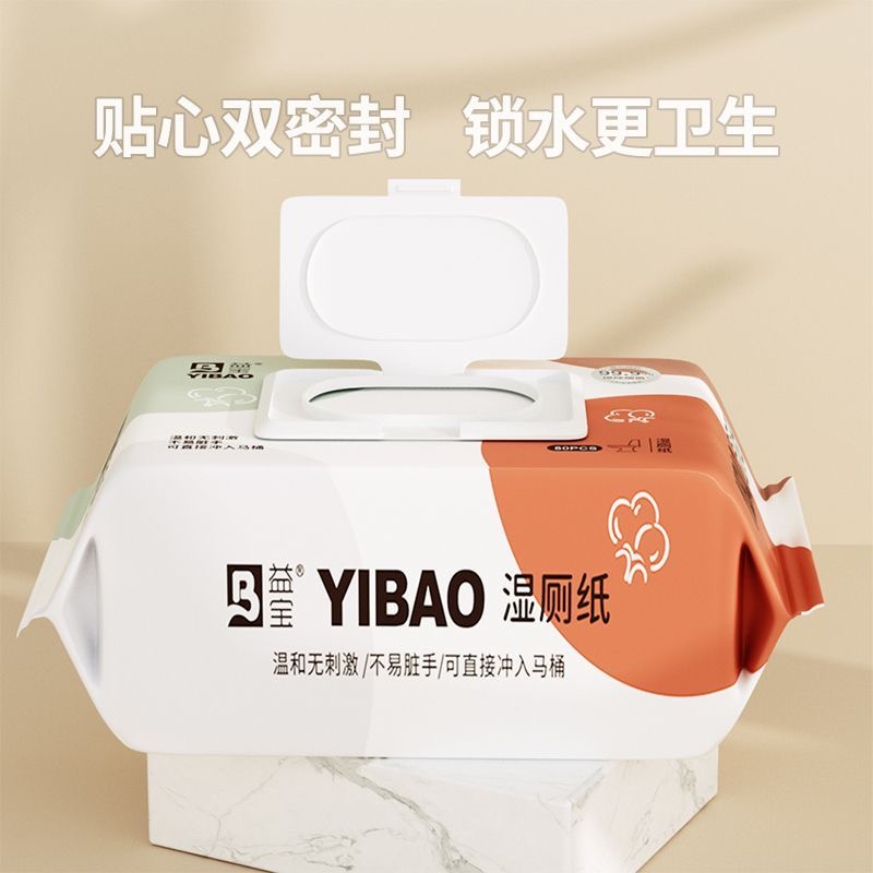 益宝湿厕纸10大包80抽洁厕擦屁股如厕湿纸巾家庭装清洁家用卫生纸