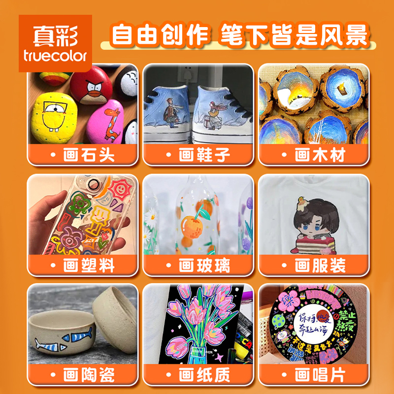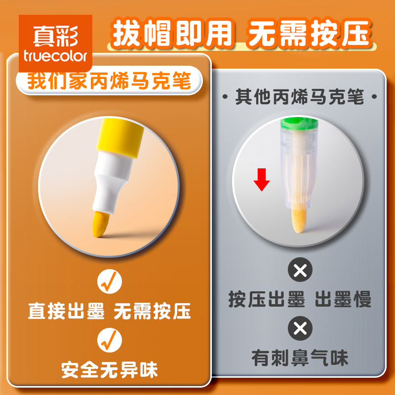 真彩丙烯马克笔不透色可叠色儿童水彩笔笔芯小学生美术专用幼儿园无毒可水洗24/80色丙稀画笔白色高光防水diy