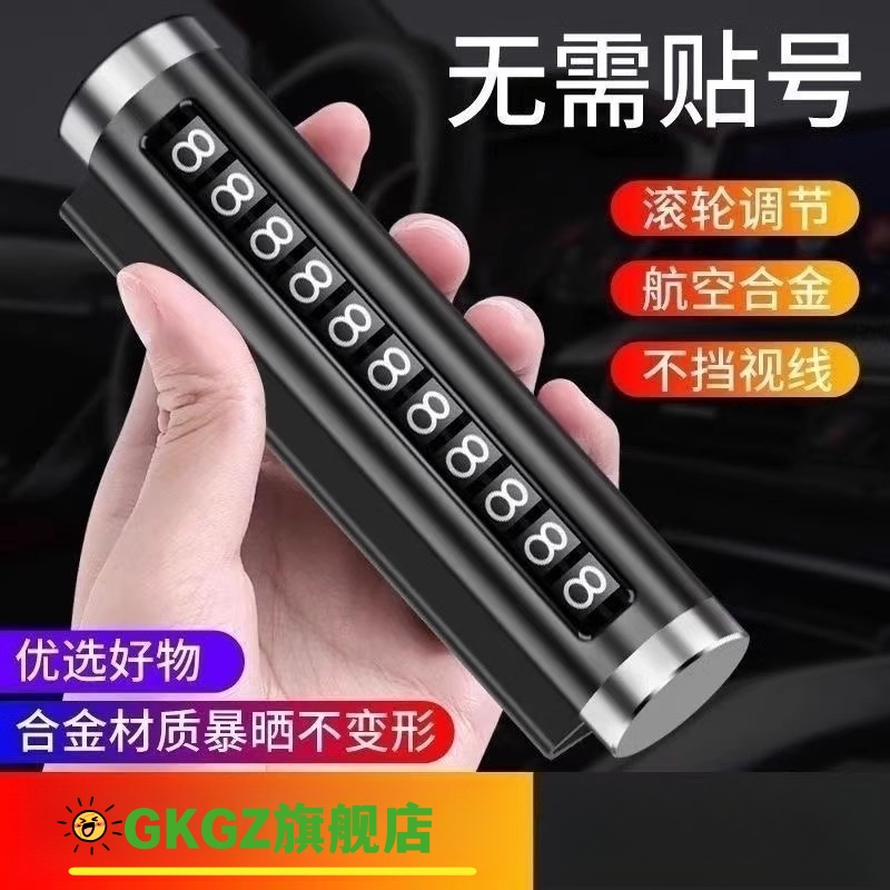 【GKGZ】新款金属滚轮号码牌挪车电话牌车用车载临时停车号码移车牌摆件车上高端创意汽车用品手机支架