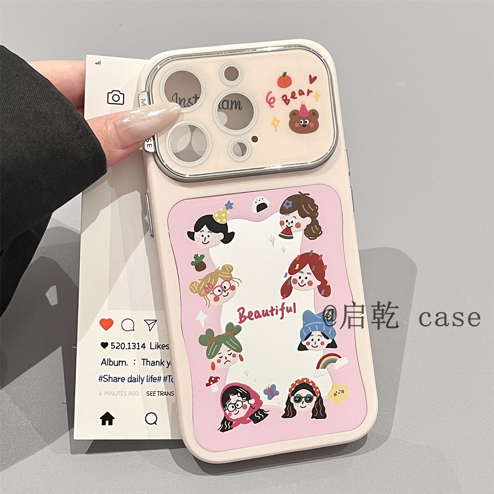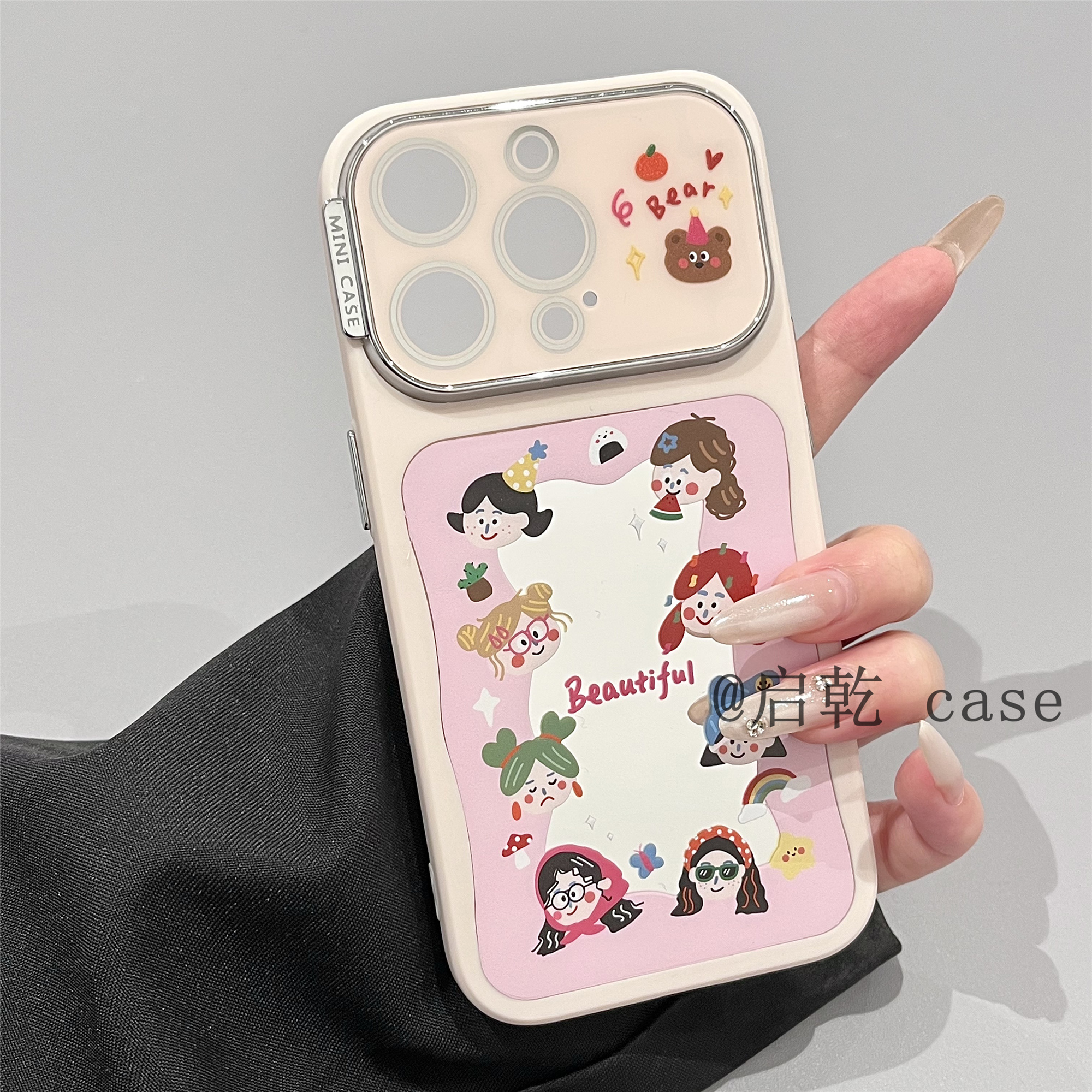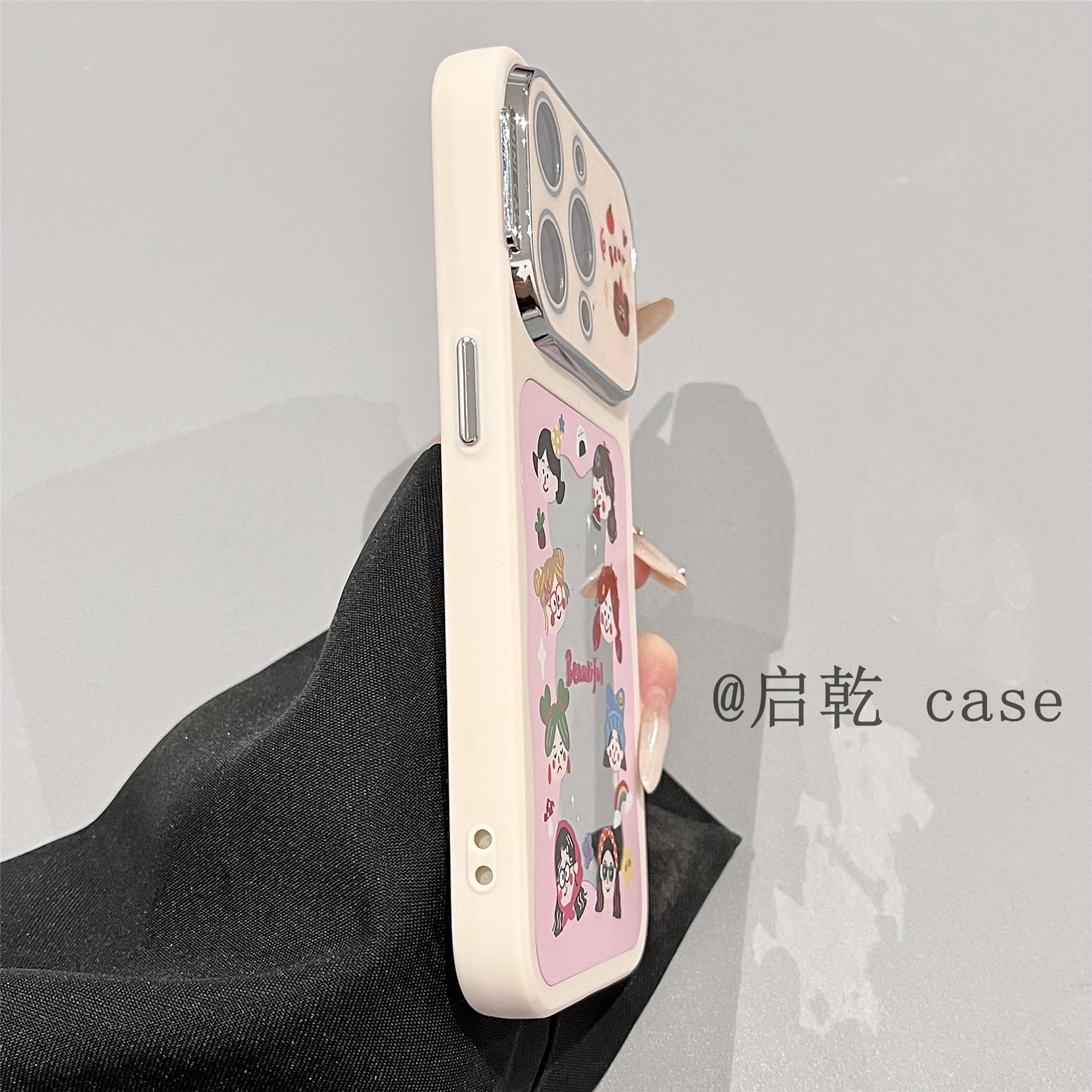 启乾 大视窗镜面女孩头像iPhone17/16手机壳适用苹果15/14promax自带镜头膜软壳少女心可爱卡通新款全包镜子
