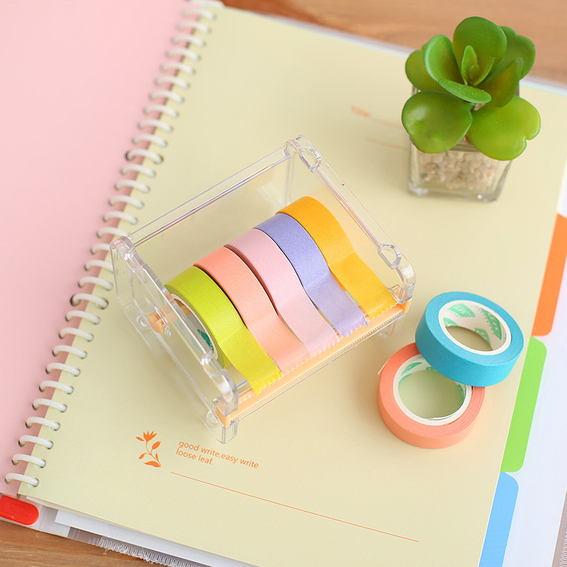 文艺桌面胶带座分装切割器创意胶带收纳盒迷你胶带收纳盒收纳座 可叠加使用 和纸胶带切割器女用 办公胶带座