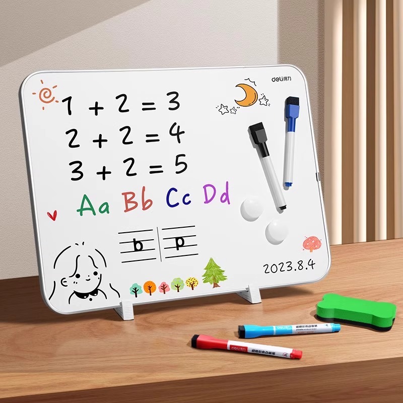 得力桌面小白板磁性双面白板可手持带支架可擦写桌面写字板留言白板儿童画板家用教学备忘记事板直播间提示板