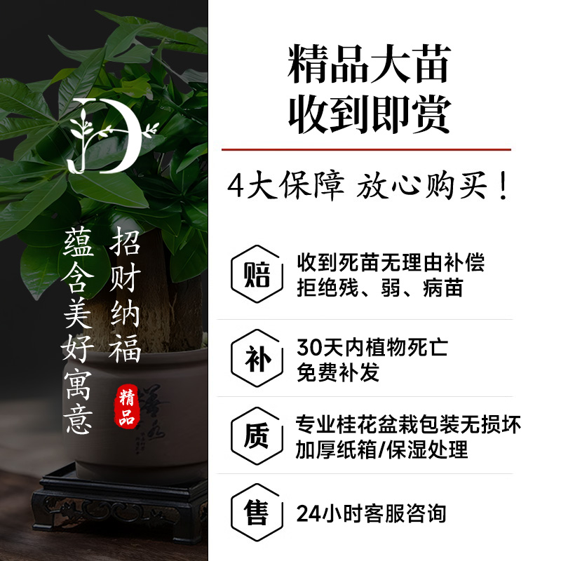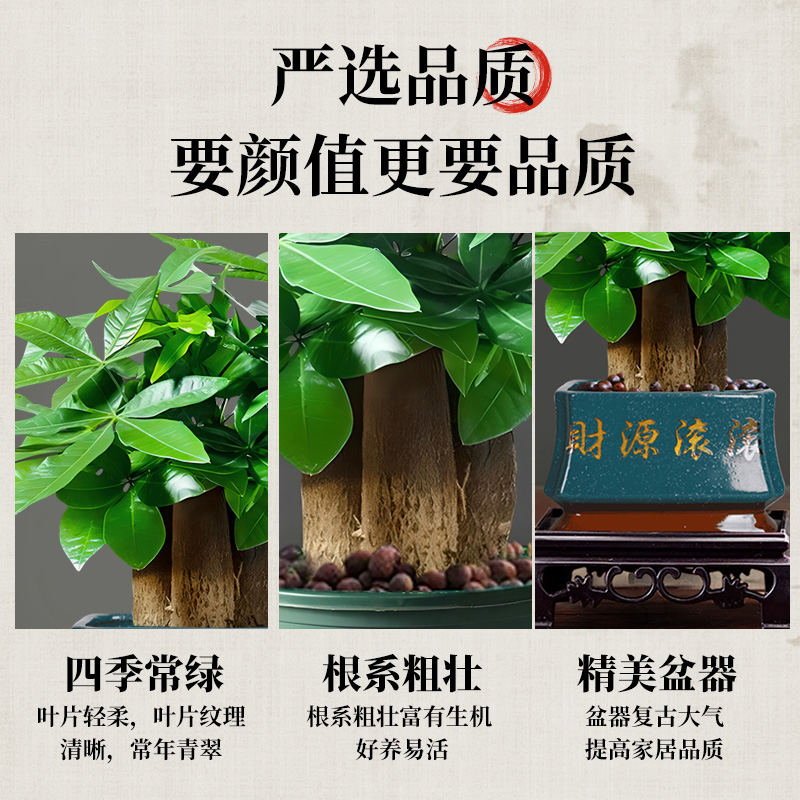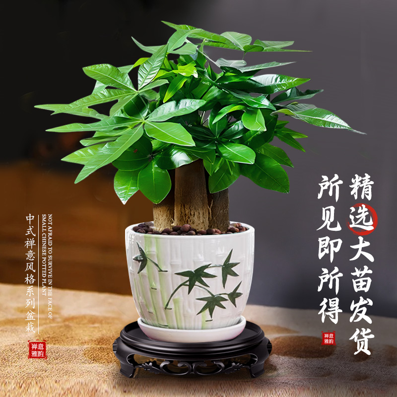 大盆发财树小盆栽三杆开业招财绿植物办公室客厅旺宅中式盆景好养