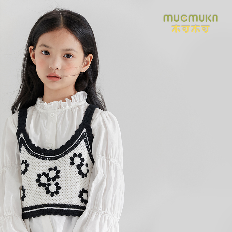 【塞纳河畔的秋日】女童洋气针织背心白色衬衫上衣秋冬外穿吊带